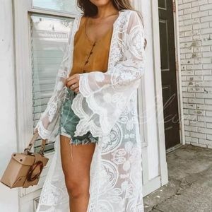 SOLD OUT White Bohemian Scallop Embroidered Duster Kimono