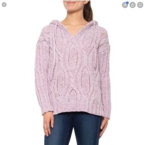 CUPIO | Hooded Cable Knit Hi/Lo Sugarplum Sweater