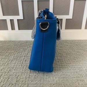 Brand new in packaging, smoke free home. Thirty-One Miles of Style Daring Cobalt Pebble Bag. Rich cobalt blue with black handles and removable crossbody strap. Outside pocket, inside pcokets, zipper closure. 12" w x 10" h x 3.5" d.
