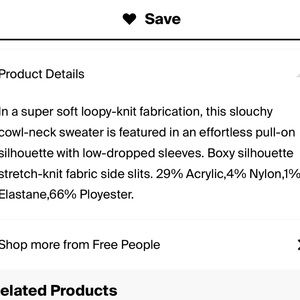 66% polyester, 29% acrylic, 4% nylon, 1% elastane