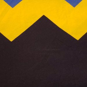 *This perfect meld of funky and comfy features short sleeves and pink,violet,red,blue & yellow zig zags on a navy background.