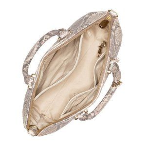 Featured in Chiffon Mare, a feminine take on the snakeskin trend blending pale pink and cool gray tones with a subtle glitter finish. Genuine leather