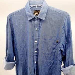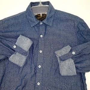 Men's Cuff-able Long Sleeve, Blue Chambry Dress Casual Shirt