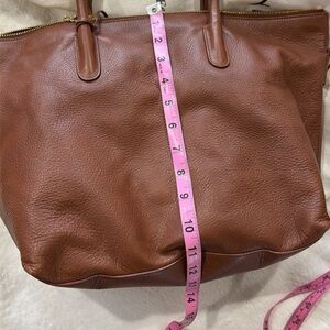 Beautiful leather zippered bag. Light grain leather. Can be carried on shoulder or crossbody. Excellent condition.