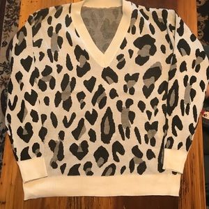 🎉HP🎉White Cheetah Print V Neck Sweater!