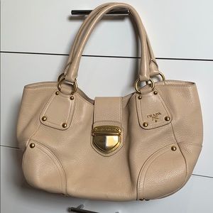 Authentic Prada Ivory Pushlock Tote Vitello Daino Medium Buckle bag