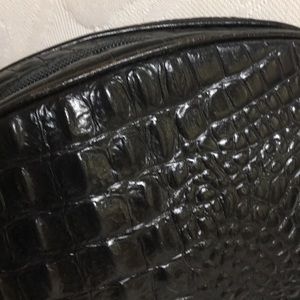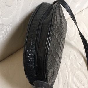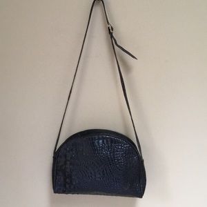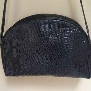 Black Vintage Half Moon Shape Leather Embossed crocodile Handbag . Adjustable Strap (48”)