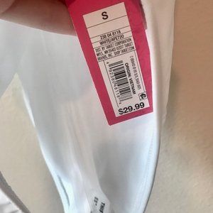 White one piece swimsuit with red/blue stripes on sides. Would be perfect for fourth of July lake days! New with tags - never worn.