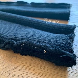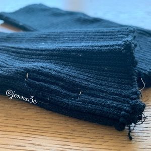 Chunky knit fingerless glove with thumbhole & exposed raw edge.