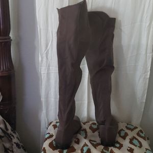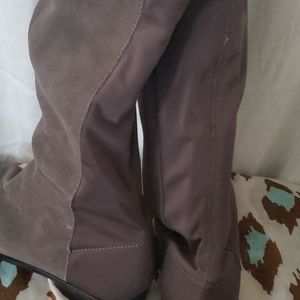 These taupish, brown color sz 5.5 over the knee boots feel so comfy around your leg n over your knee. The back of the leg has a stretchy material to provide extra room if needed. These have been gently worn n still look awesome. So hard to take pics so hope you can see their edgy fun. Quite comfy too. Offers always welcomed from this Posher❣❣