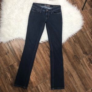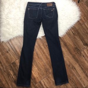 A clean, dark rinse colors lean, straight-leg jeans finished with contrast topstitching and logo embroidery. Four-way stretch denim conforms to the body without losing shape over time.