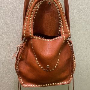 Bauer and Roach handmade California leather studded shoulder bag . Made by California designers. Sturdy leather with metal studs. No lining. Purse get softer and softer with use. You will enjoy it for years to come.