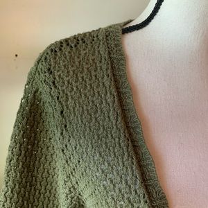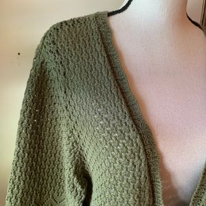 •Pretty cardigan is green with detailed eyelet-like pattern