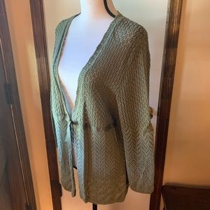 ALFRED DUNNER Green Eyelet Detailed Cardigan, size Large