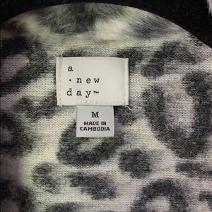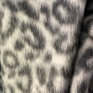 Fuzzy, warm open style coat with 2 pockets, never worn, dark and light grey leopard print