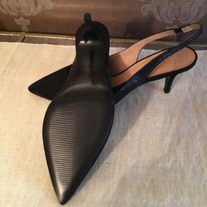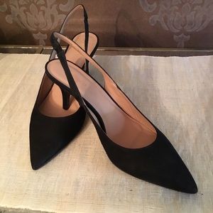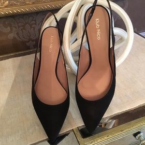 New without tags Klub Nico black suede with accent leather on the side heel. The back is an elasticized slingback.