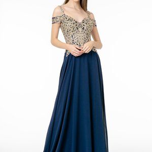 Long Formal Evening Dresses with sweetheart neckline, off shoulder dress, sheer back with zippered closure, a-line shape.