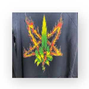 HTF: new UNIF ☻ Burn Me Weed Distressed Sweatshirt ☻ Flames ☻︎ Dirty Black ☻︎ M