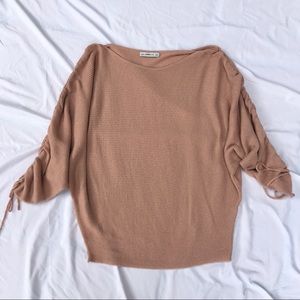 Blush light pink Zara slouchy oversize dolman batwing sweater top with scrunch tie sleeves