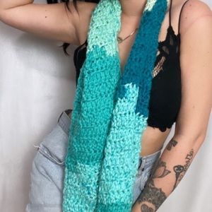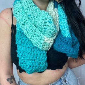 VINTAGE HAND KNIT BLUE LONG SCARF