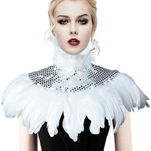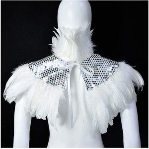 Natural Feather Sequin Shawl Gothic Black Cape