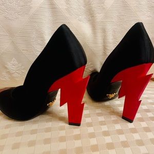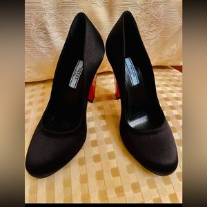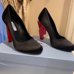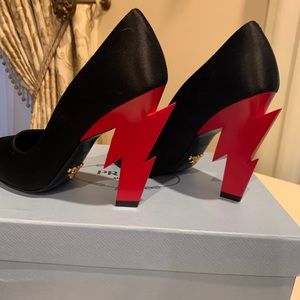 PRADA Black Satin gorgeous LIGHTING BOLT HEEL PUMP size 36
