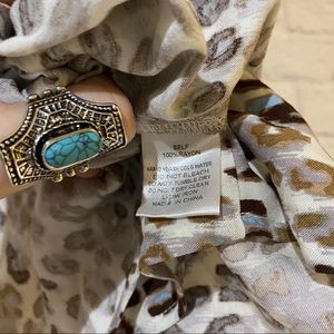 🌸FREE SHIPPING🌸This top is size small and brand new! It features a wrap/tie front so it can be worn many different ways. It has a fun leopard design all over along with oversized sleeves for a fun, dramatic finish. This shirt is 100% rayon so it’s comfy, lightweight and breathable. This unique piece is perfect for any fashionistas wardrobe 🦋