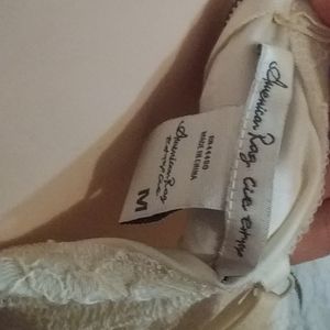 It will feel like summer everyday in this lacey masterpiece! Everything about this dress is adorable-from its crocheted lace to its black and silver embroidered design on the bust! This has an attached white slip under the skirt. Nwot.