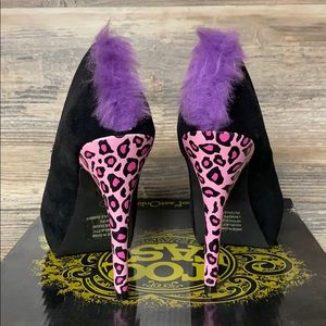 Black Pink & Purple Toe Embroidery, Pink Leopard 5 1/2" Heel