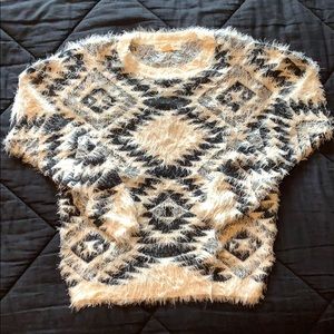 Urban Outfitters black and cream aztec pattern eyelash sweater