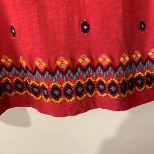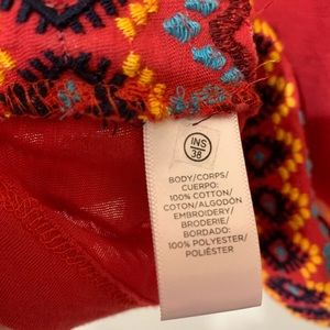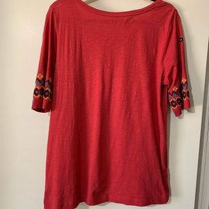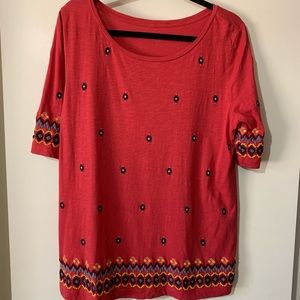 Short sleeve Loft top with Aztec accents on front of top and designs on sleeves and around the waist, solid colored back