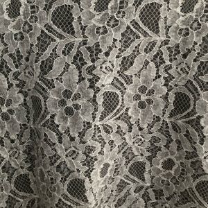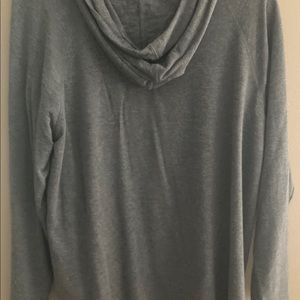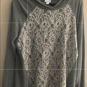 White lace over gray shirt with hood