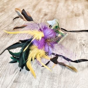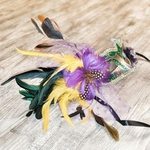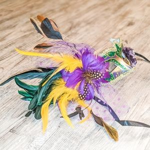 Ladies Mardi Gras Mask 2022 Mardi Gras Ball Formal Attire Exotic Feathered Mask in Purple Green & Gold Mardi Gras Colors