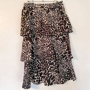 Who What Wear Leopard Print Ruffled Midi Skirt