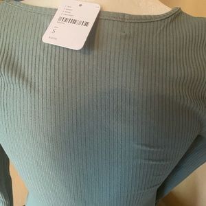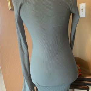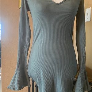 Long sleeve ribbed mini dress featuring a slim, bodycon fit and bell-shaped sleeve cuffs for a touch of femme.