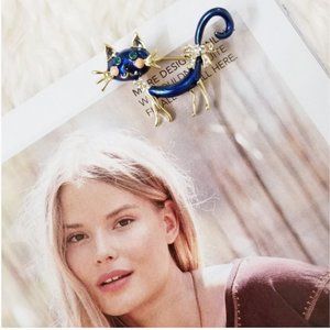 NEW Exquisite 18K Gold Czech Rhinestone Cat Brooch
