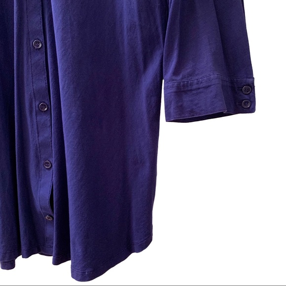Eileen Fisher Organic Cotton Jersey Button Down. Tunic length with 3/4 sleeves and button cuffs. Super soft!