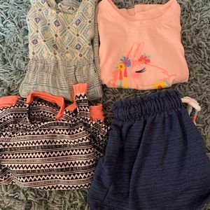 Toddler girl 2T Bundle. Roxy dress. Cat & jack bathing suit. Car & jack skort and tshirt