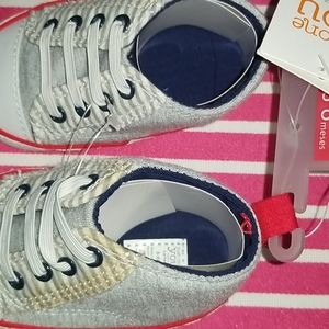 Carter's Infant Shoes in Converse Style. Stains by Laces as outlined in Photos but can be washed. Tags attached and shoes still stuffed.