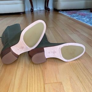 NEW WITHOUT TAGS - NEVER BEEN WORN Cole Haan Wesley Olive Green Leather Women Knee High Boots Size 7B. Due to the sensitive nature of the material, there may be minor cuff marks or scratches on the boots but they are barely noticeable. The leather hasn't softened yet.