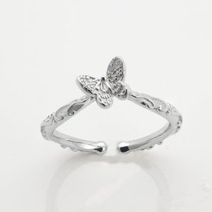 This ring has a beautiful butterfly in the middle that has a nice pattern on it. The ring itself also contains a pattern that goes around.