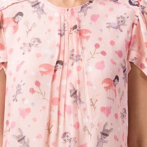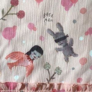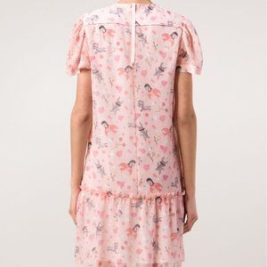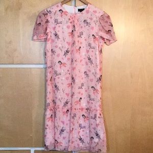 This dress was part of an exclusive fashion collaboration. Contemporary artist, Gary Baseman, designed a limited-edition collection for Coach. His whimsical sometimes gory cartoons & illustrations adorn this delicate babydoll dress for a look that's sure to turn heads.