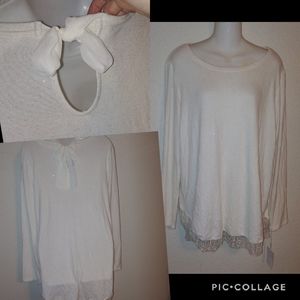 Lauren Conrad glitter blouse lace trim open back