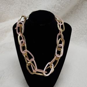 Pink and Gold Hammered Chain Link Necklace Set. Approximately 19 inches in length. Beautiful Piece comes with matching earrings.