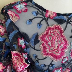 Zara brand, floral embroidery blue top with pink flowers. Size large. Laying flat Approximate Length 23" and pit to pit 20.5"