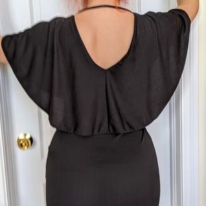 Size s, tight, shaping dress. The flowiness of the sleeves gives off the curvy image.