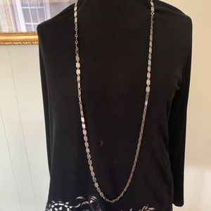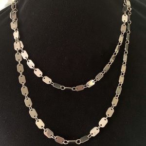 As pictured I originally purchased this to perhaps use in a crafting project but never did. It is in very good condition. No maker marks measurements are pictured. Photos shows necklace doubled and single total length would be 50 inches this is costume jewelry