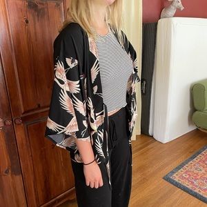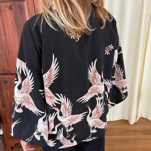 Unisex crane bird kimono top