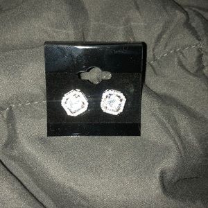 Sterling silver Setting diamond sprinkled into a sterling silver setting with a There is a square diamond base With a round diamond in the middle