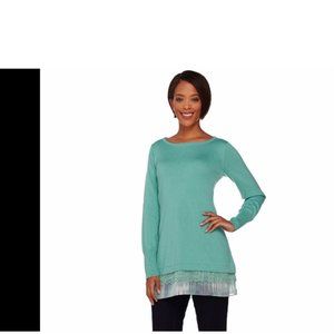 LOGO by Lori Goldstein Regular Cotton Cashmere Sweater Green XS A272837